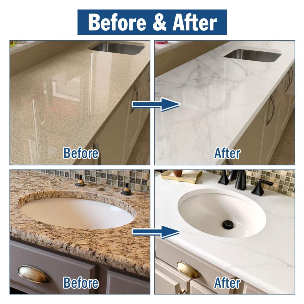 Give your kitchen or bathroom countertops a fresh, modern look without the cost and mess of replacement.